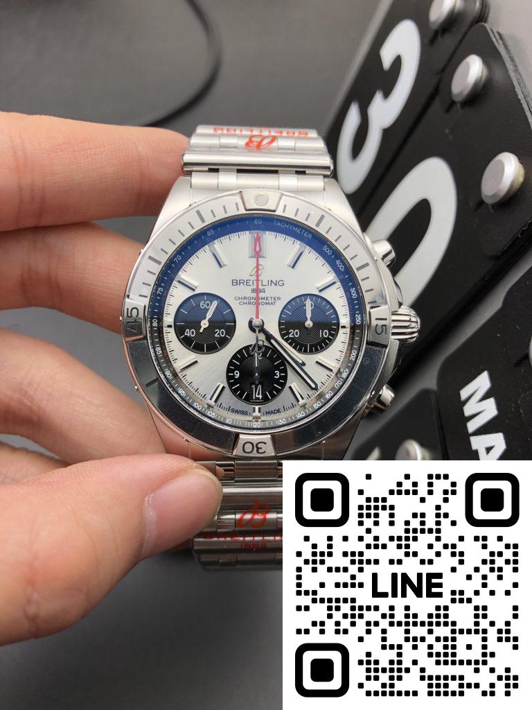 航空時計の名門ブライトリングからは、クロノマットB01のパンダダイヤルがランクイン。イタリア空軍アクロバット飛行隊「フレッチェ・トリコローリ(三色箭)」にインスパイアされたデザインです。