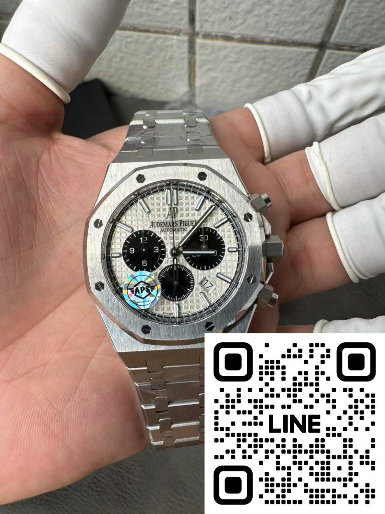 八角形ベゼルで有名なロイヤルオークにも、洗練されたパンダダイヤルが存在します。以前のOM製などはサイズや厚さに難がありましたが、APS工場が最新ロットで完全修正。