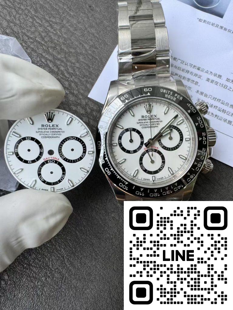 パンダダイヤルといえば、やはりロレックス デイトナが圧倒的王者です。2023年登場の新型126500LNは、旧型116500LNから細部がアップデートされ、ケース厚・針形状・夜光塗布すべてが純正同様に進化しました。