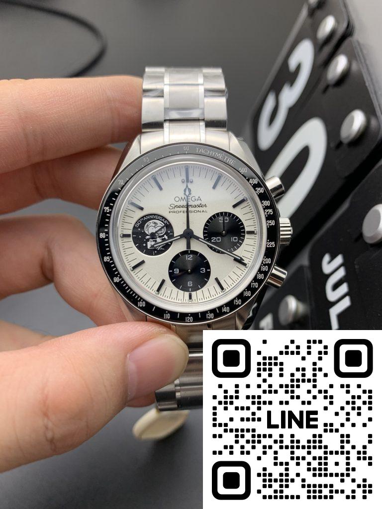 オメガを代表するクロノグラフ「スピードマスター」にも、人気のパンダダイヤルが採用されています。特に2020年に登場した“スヌーピー賞”50周年記念モデルは、裏蓋に独自のギミックを備えた特別仕様。