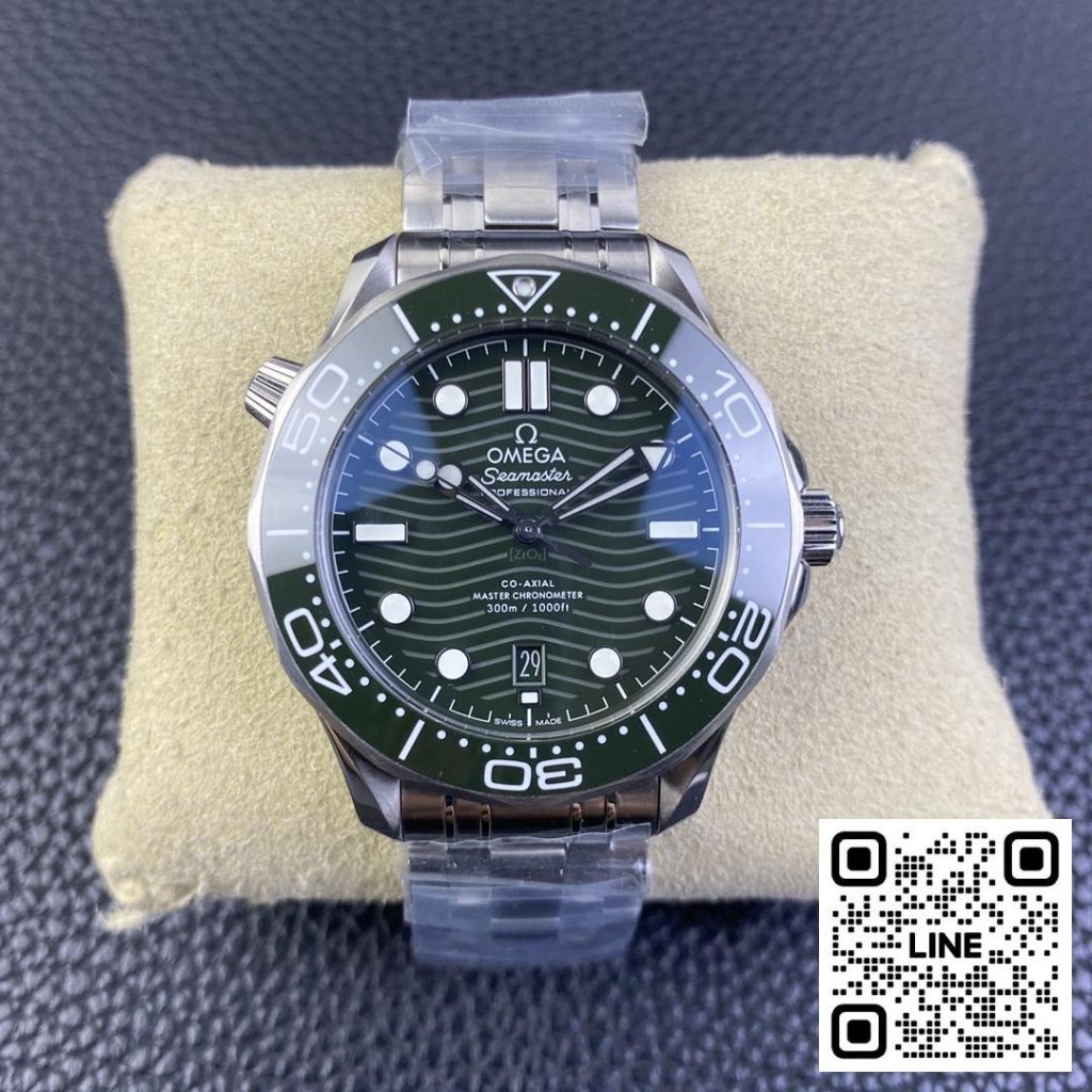 VS工場による新作シーマスターは、42mmケースにCal.8800クローンムーブメント搭載。波模様のグリーンダイヤルとグリーンセラミックベゼルが特徴的で、潜水時計としての機能性も健在。シーマスターの魅力を存分に味わえる人気モデルです。