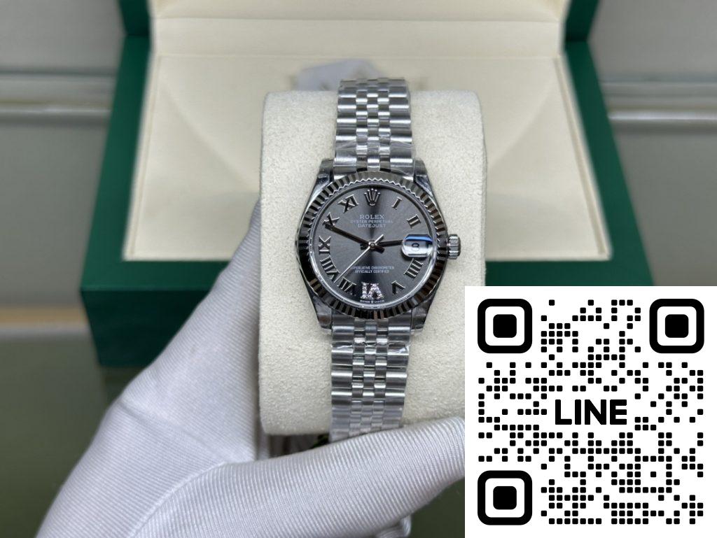 2025年最も人気を集めたレディースモデル。31mmの絶妙なサイズと、上品なグレー文字盤が高級感を演出。