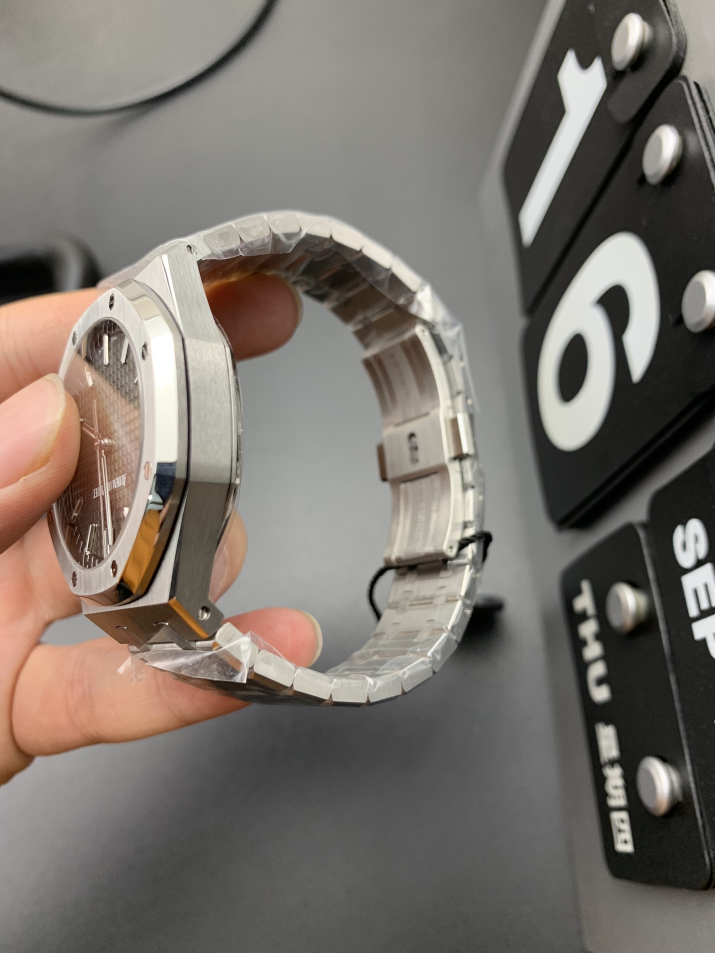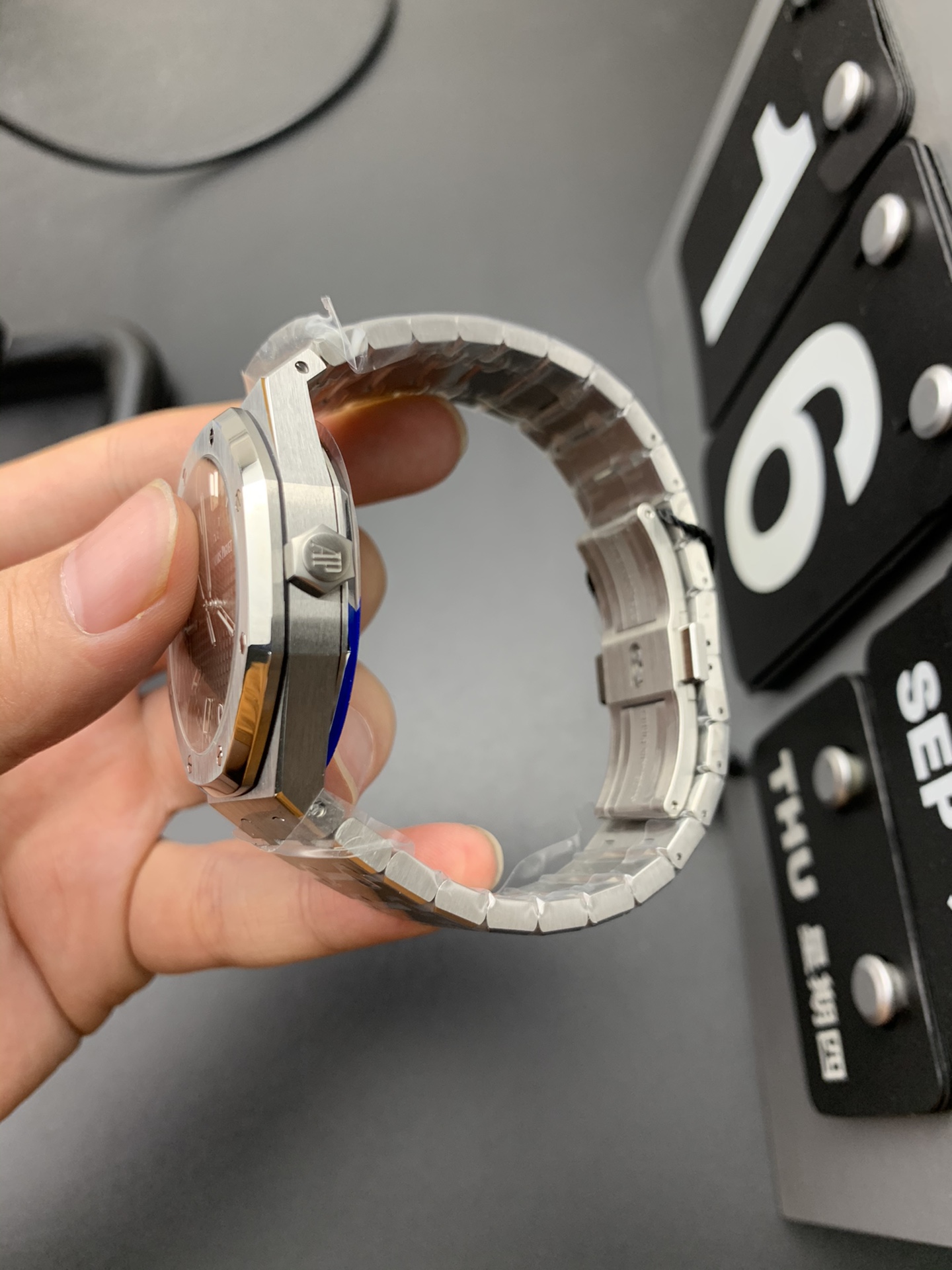 - 自動ローター:純正同様のスケルトン加工されたローズゴールドカラーを採用(※市場には色が異なる安価な品もありますが、ZFは純正の色味と形状を忠実に再現)。APロゴの彫刻も精巧です。