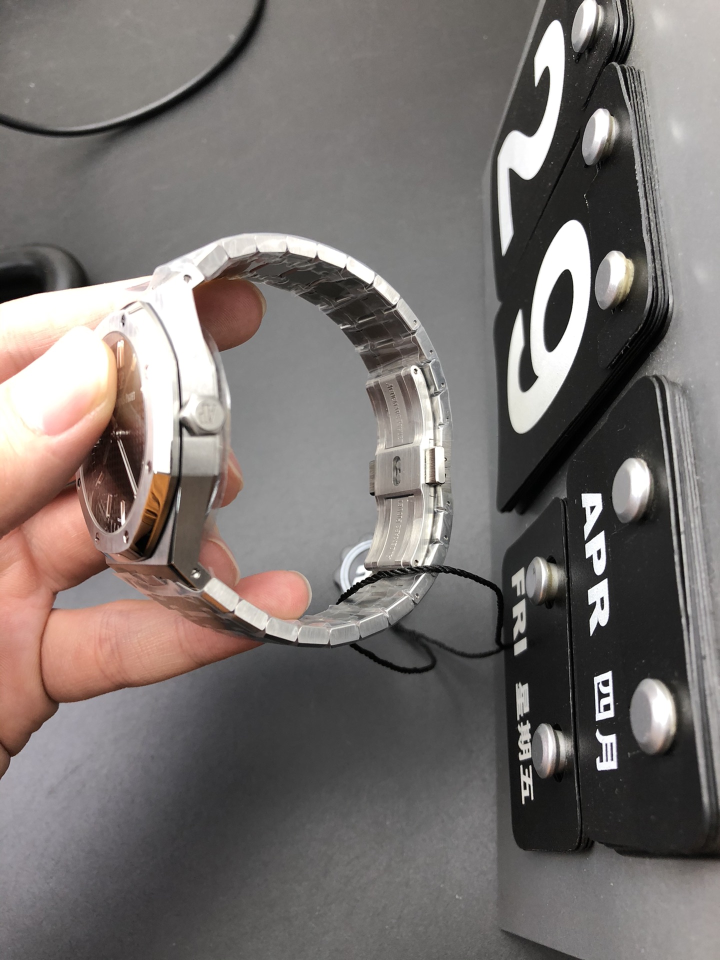 • 自動ローター:純正同様のローズゴールドカラーを採用(※市場の安価な製品は赤みが強すぎる傾向がありますが、ZFは純正の色味を再現)。APロゴの彫刻も立体的かつ精巧。