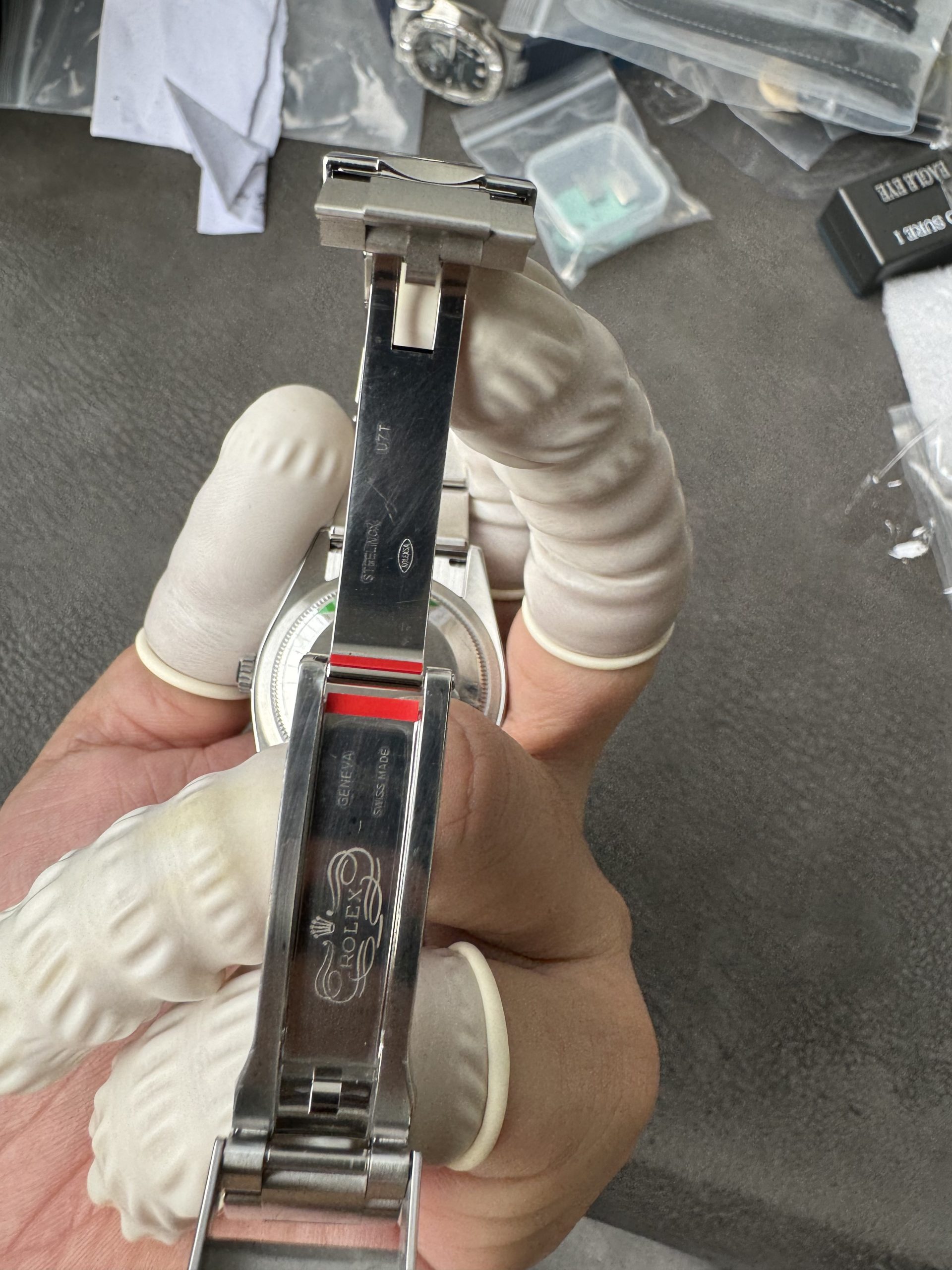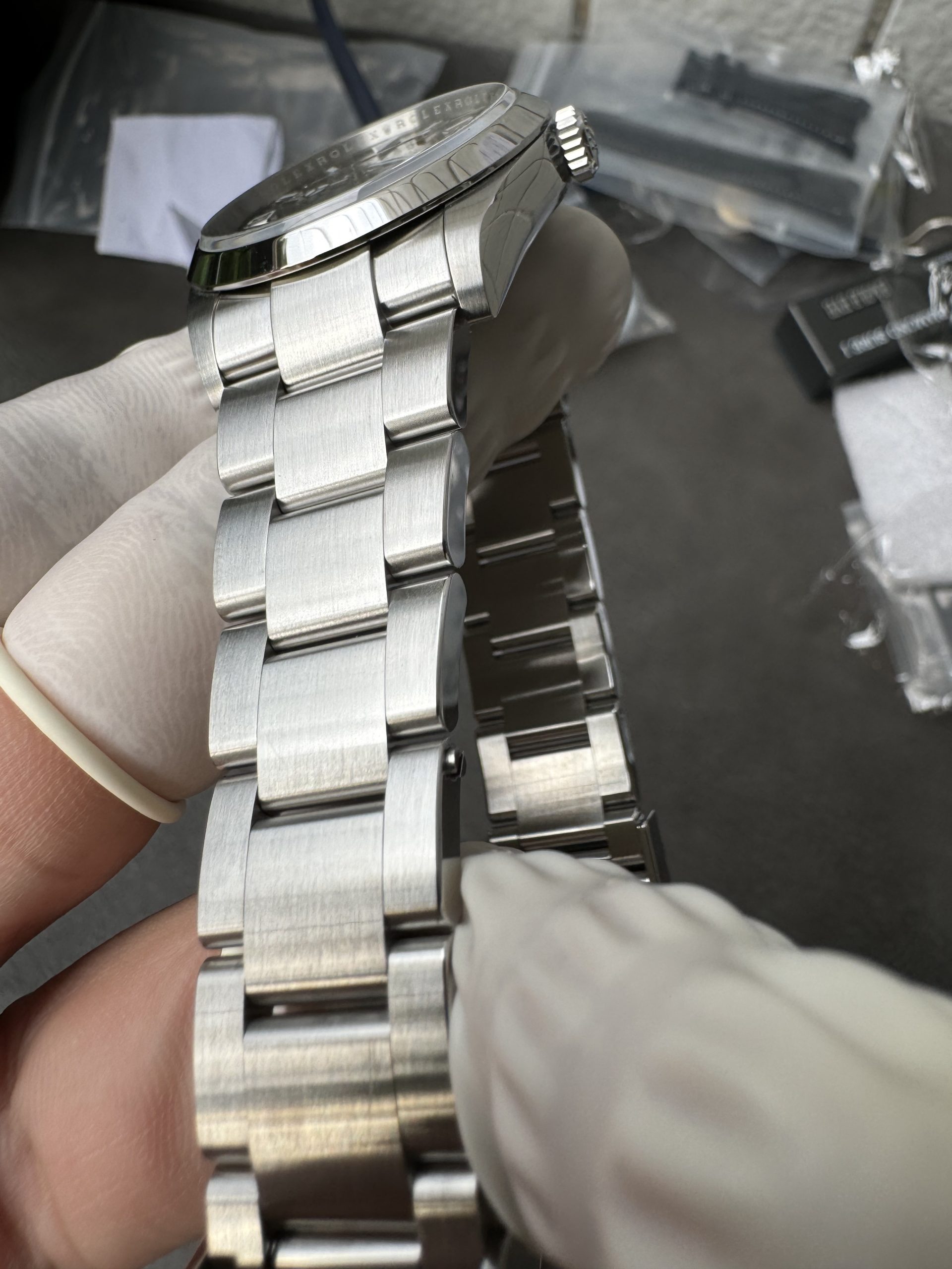 - ブレスレット:904Lオイスターブレスレット。クラスプの開閉音や感触、「イージーリンク(Easylink)」による5mmの微調整機能もスムーズに動作します。