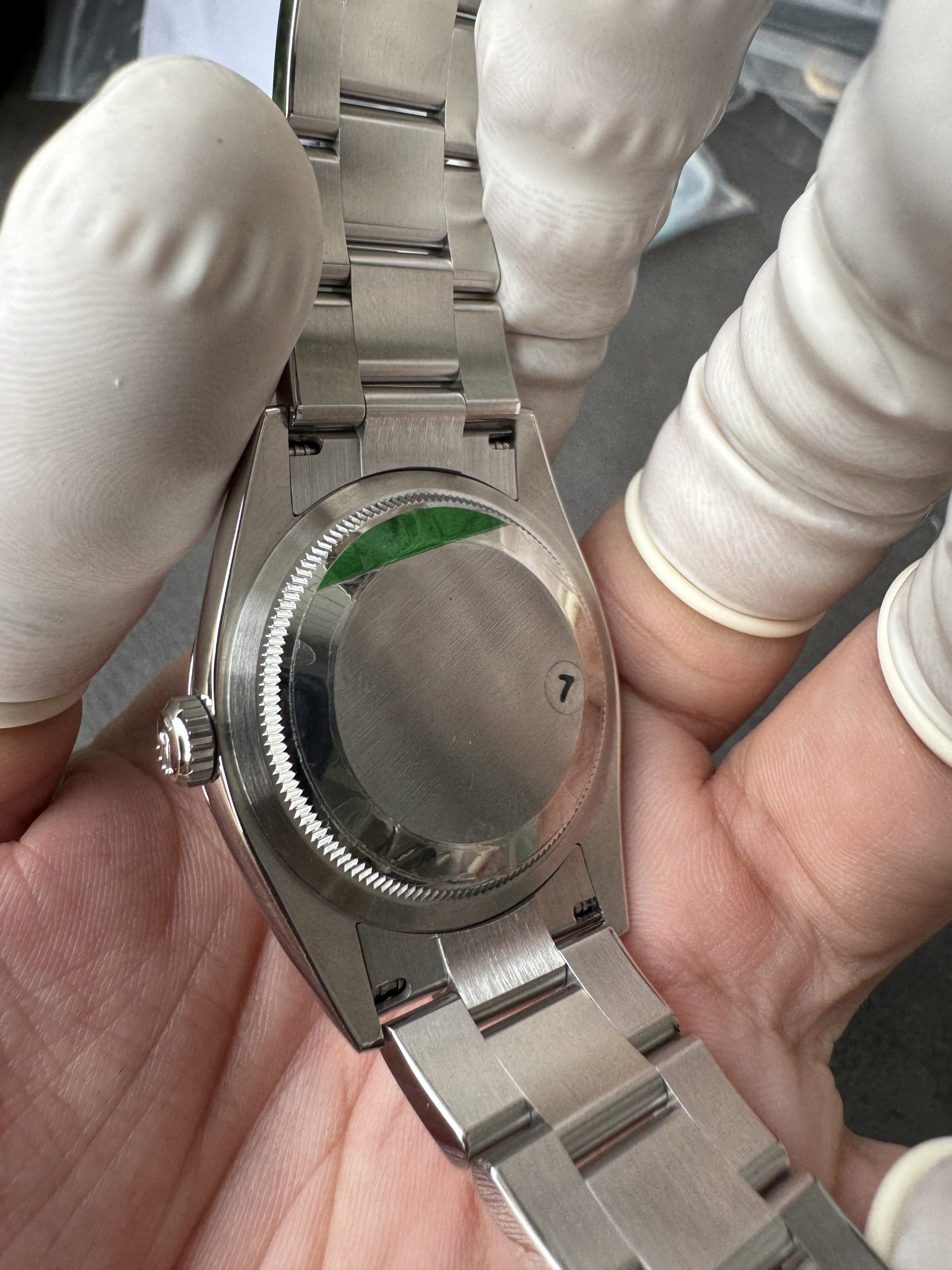 - ケース径/厚さ:36mm/約11.5mm。純正品(GEN)をスキャンして設計されたケースは、ラグのカーブやポリッシュの輝きまで忠実に再現。装着感は純正そのものです。