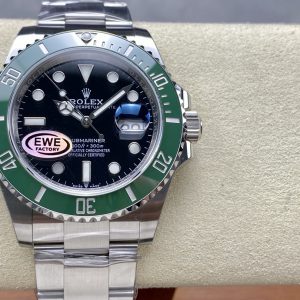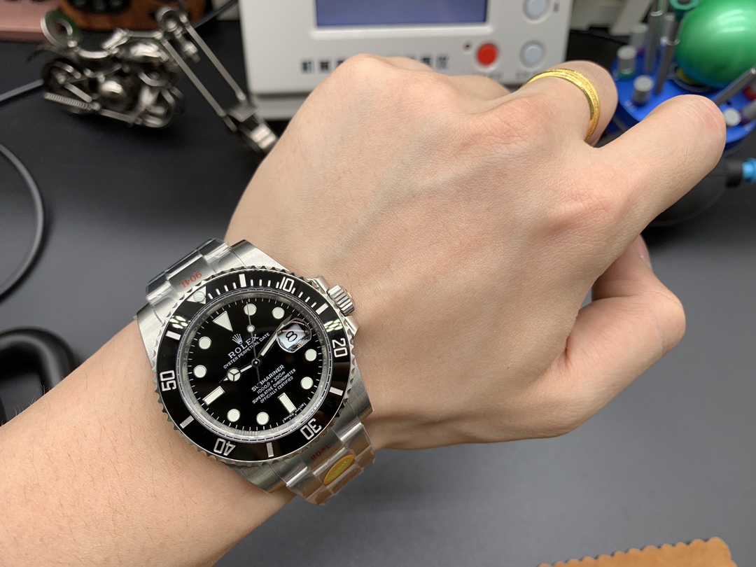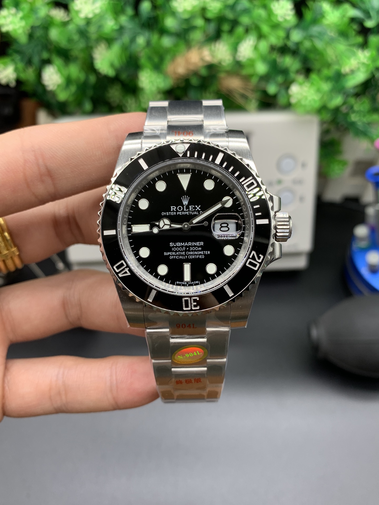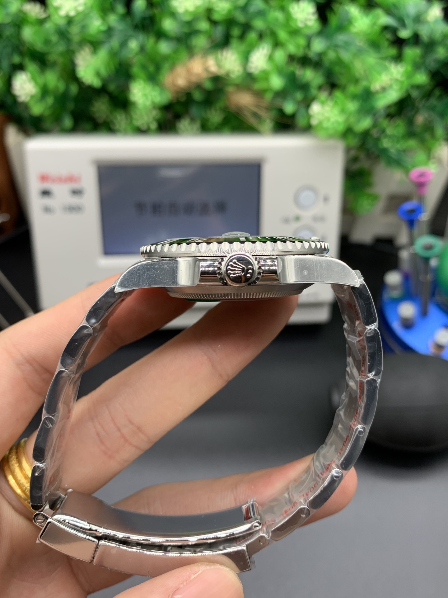 NOOBファクトリーのV12版サブマリーナは、セラミックベゼルを新配合×新焼成温度で再設計。肉眼でも実機同等の発色に到達。さらに【ブルーサファイア夜光石】と【ワンタッチ外保険扣】を搭載した独自仕様です。ムーブメントはクローンCal.3135一体機(ブルーひげぜんまい/輸入KIF耐震、偽三角耐震ではない)。