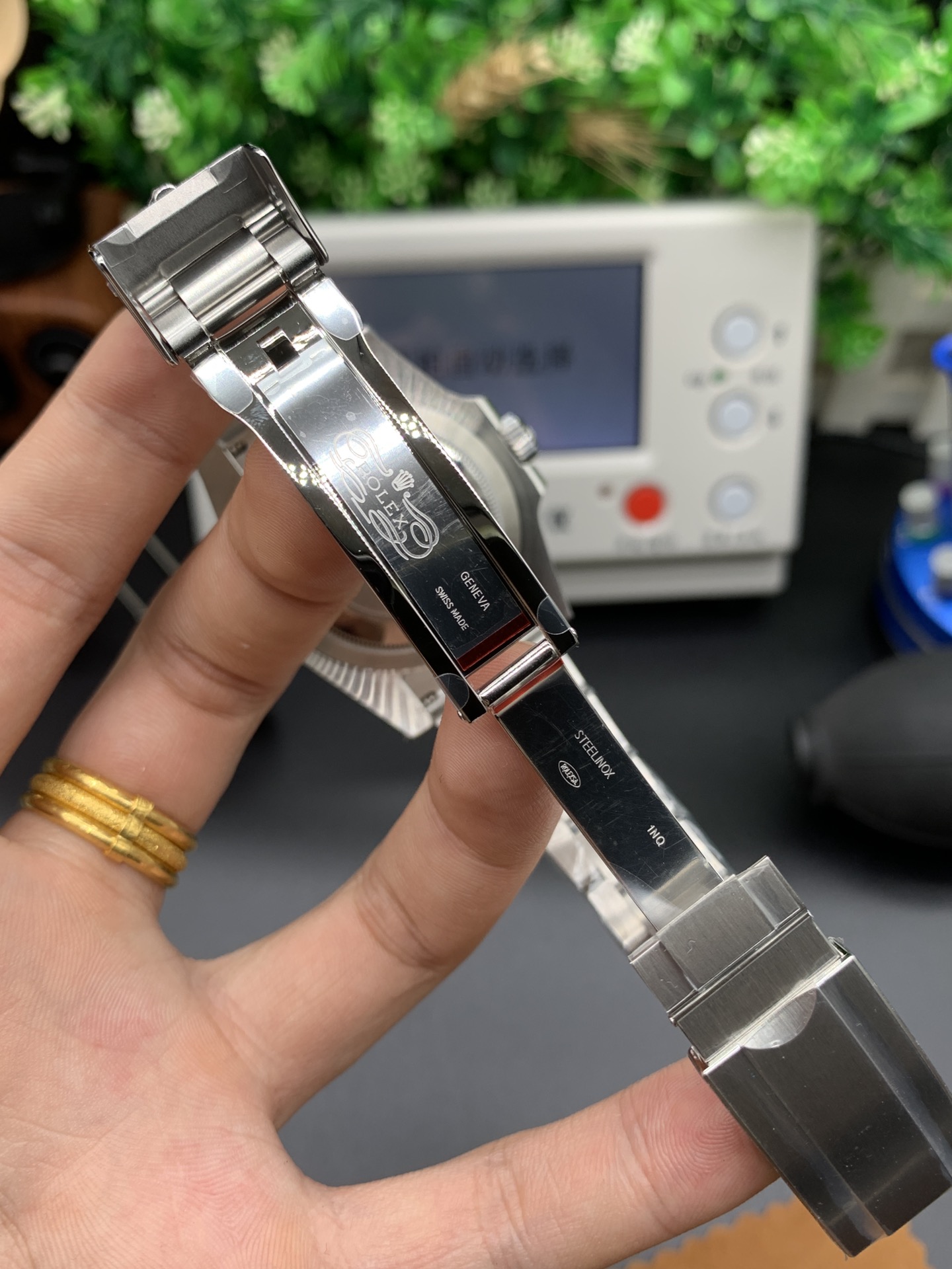 ブレスレット:オイスターブレス、ワンタッチ外保険扣(内側を抉り+本体を押圧で自動開放)、ソリッドエンドリンク、ミクロ調整機構付きクラスプ