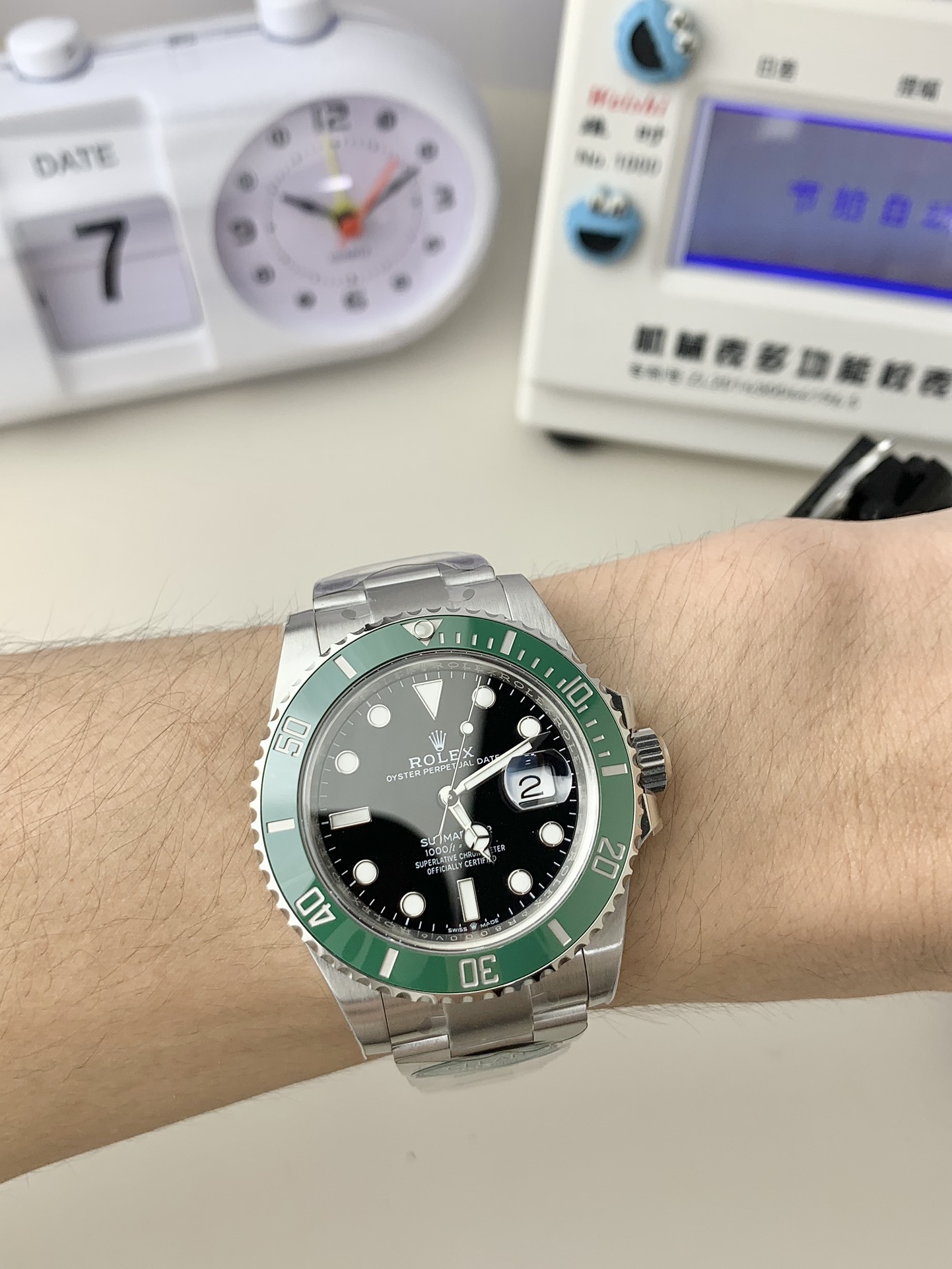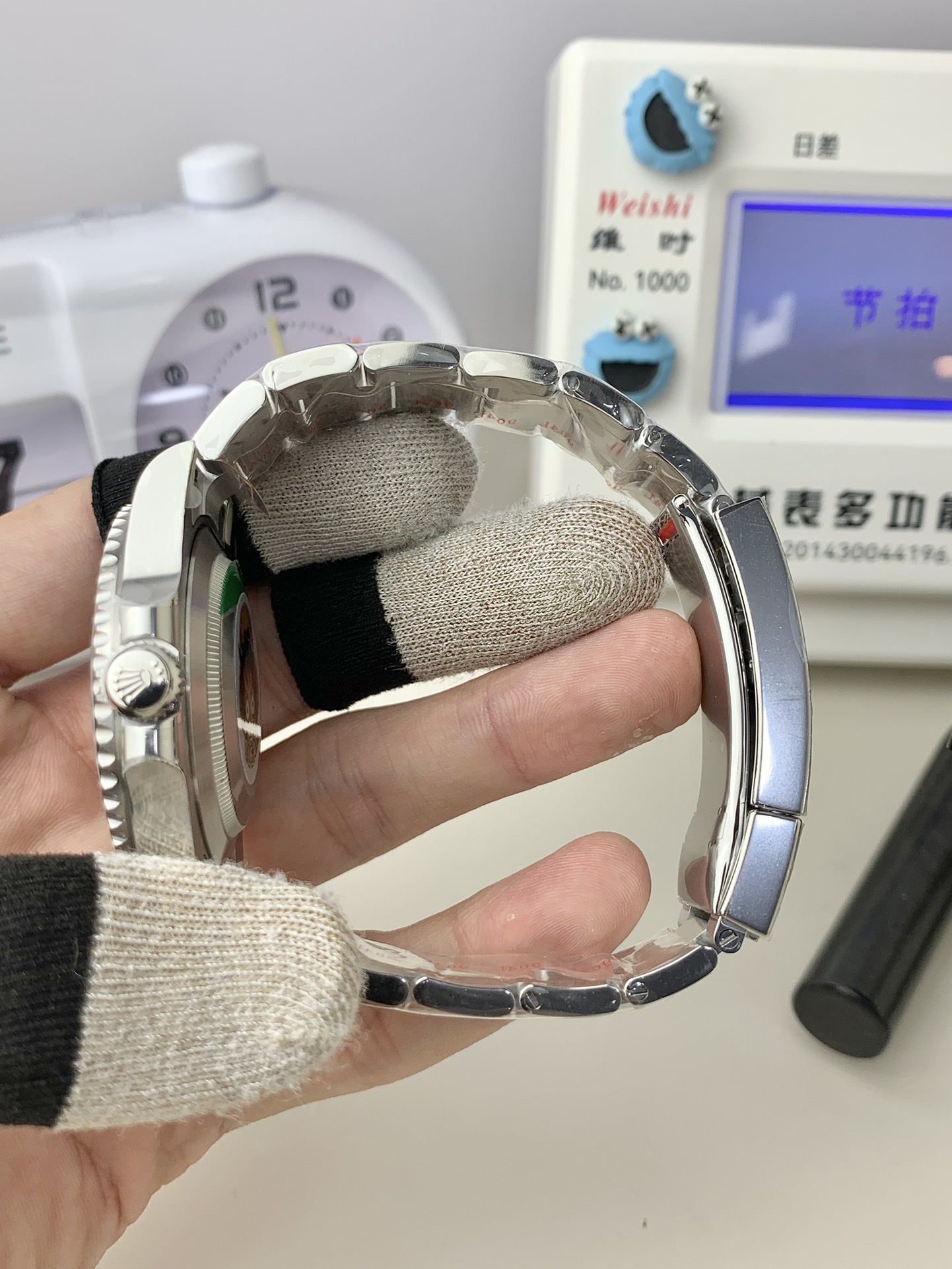 Clean工場が送り出す、現行41mmケースを採用したロレックス サブマリーナー デイト 126610LV(グリーンベゼル)。本モデルは、Clean独自の改良を加えたクローンCal.3235一体型ムーブメントを搭載し、安定性と完成度の両立を重視した仕様となっています。ケース、文字盤、ベゼル、夜光表現に至るまで、41mmサブマリーナーで指摘されやすかった弱点を一つずつ調整。特に日付フォント、夜光の発色バランス、セラミックベゼルの色味においては、実機を基準に細かな検証が行われています。派手さよりも完成度を重視した、Cleanらしい仕上がりの一本です。