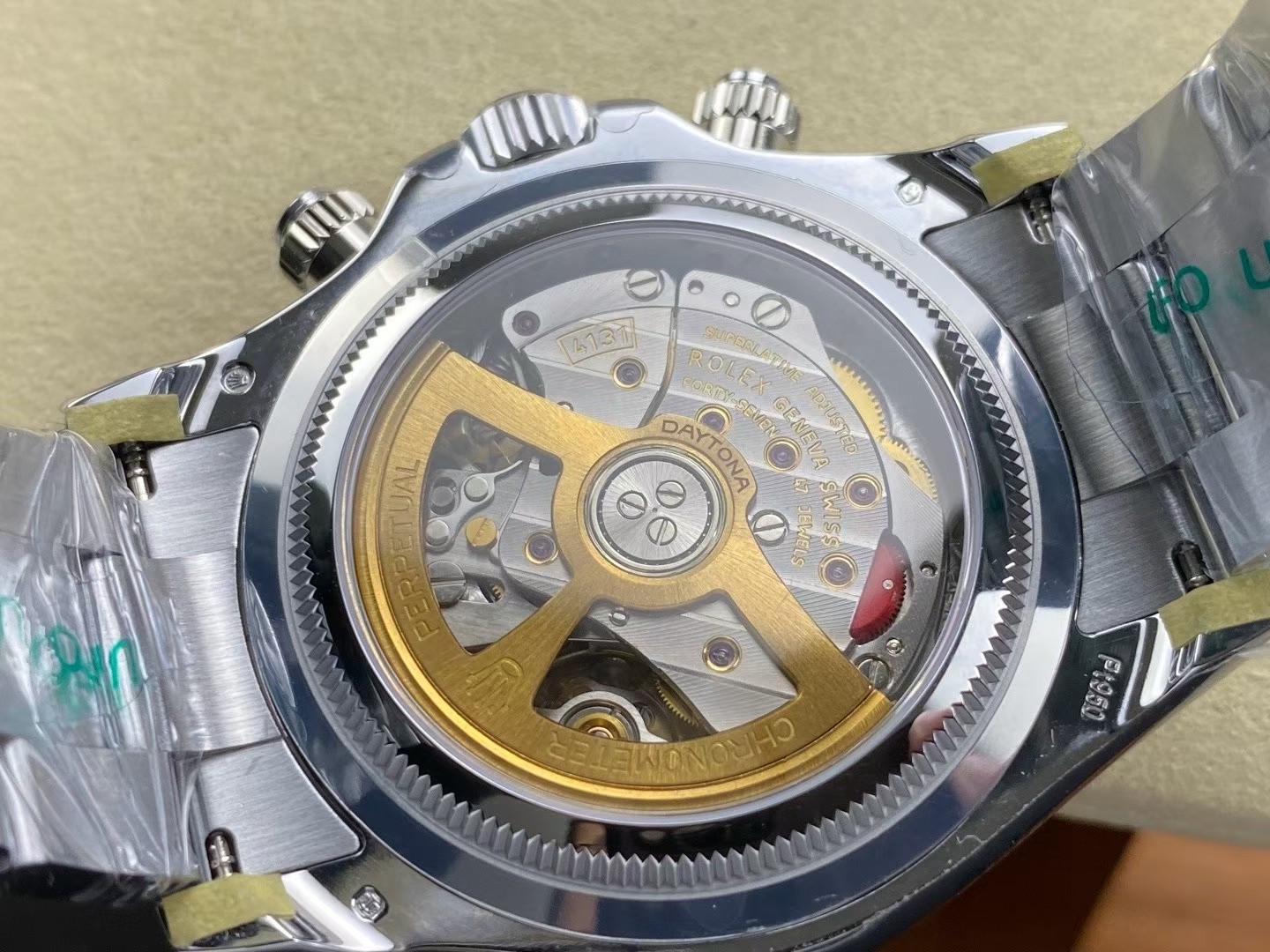 - ムーブメント:4131 フリースプラング一体構造/自動巻クロノグラフ。トルク伝達安定・耐衝撃性強化。構造を原装と同じ配置で再現 。