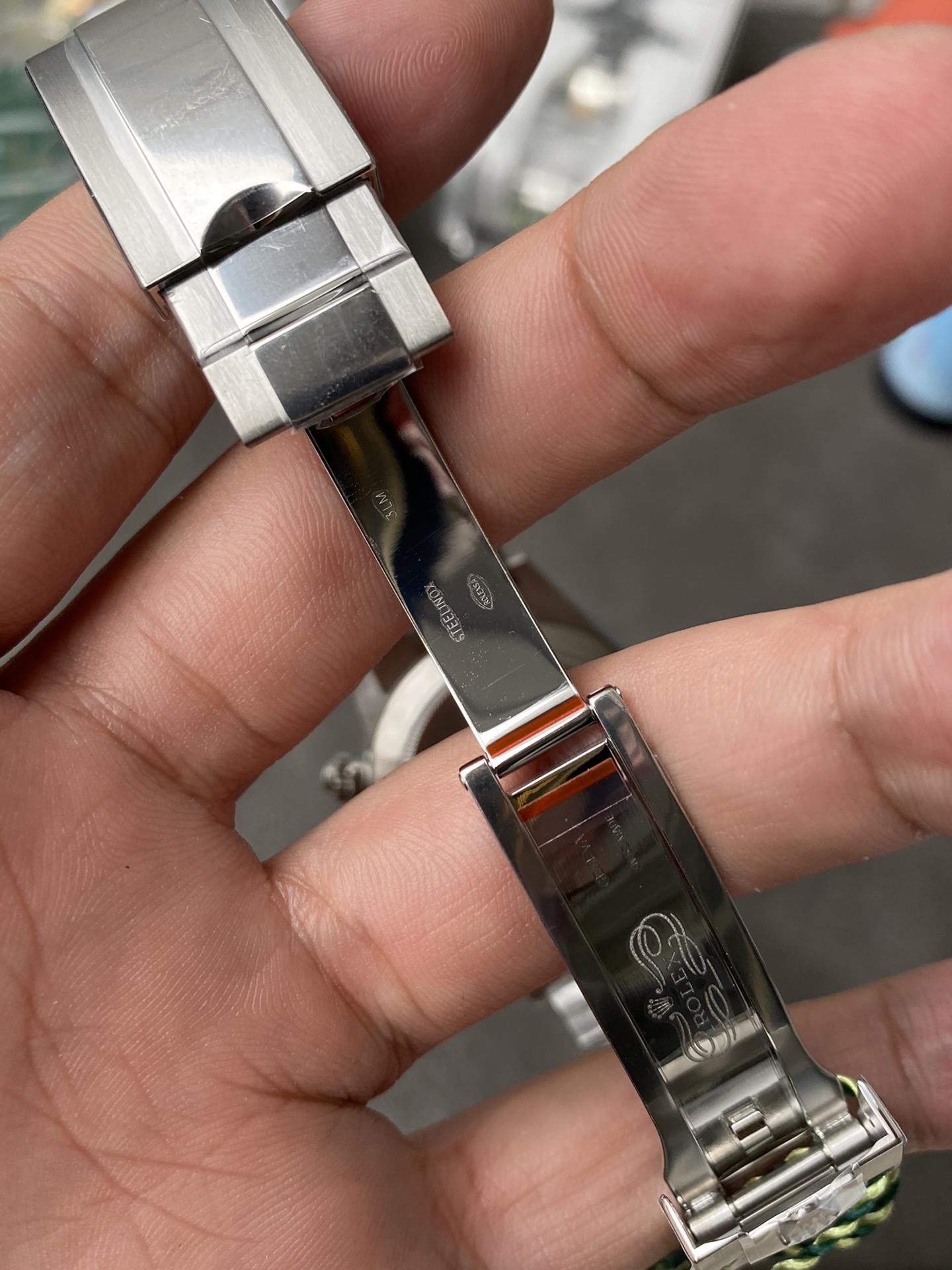 - ブレスレット:904Lスチール製オイスターブレス。ヘアライン×鏡面のコンビ仕上げ。